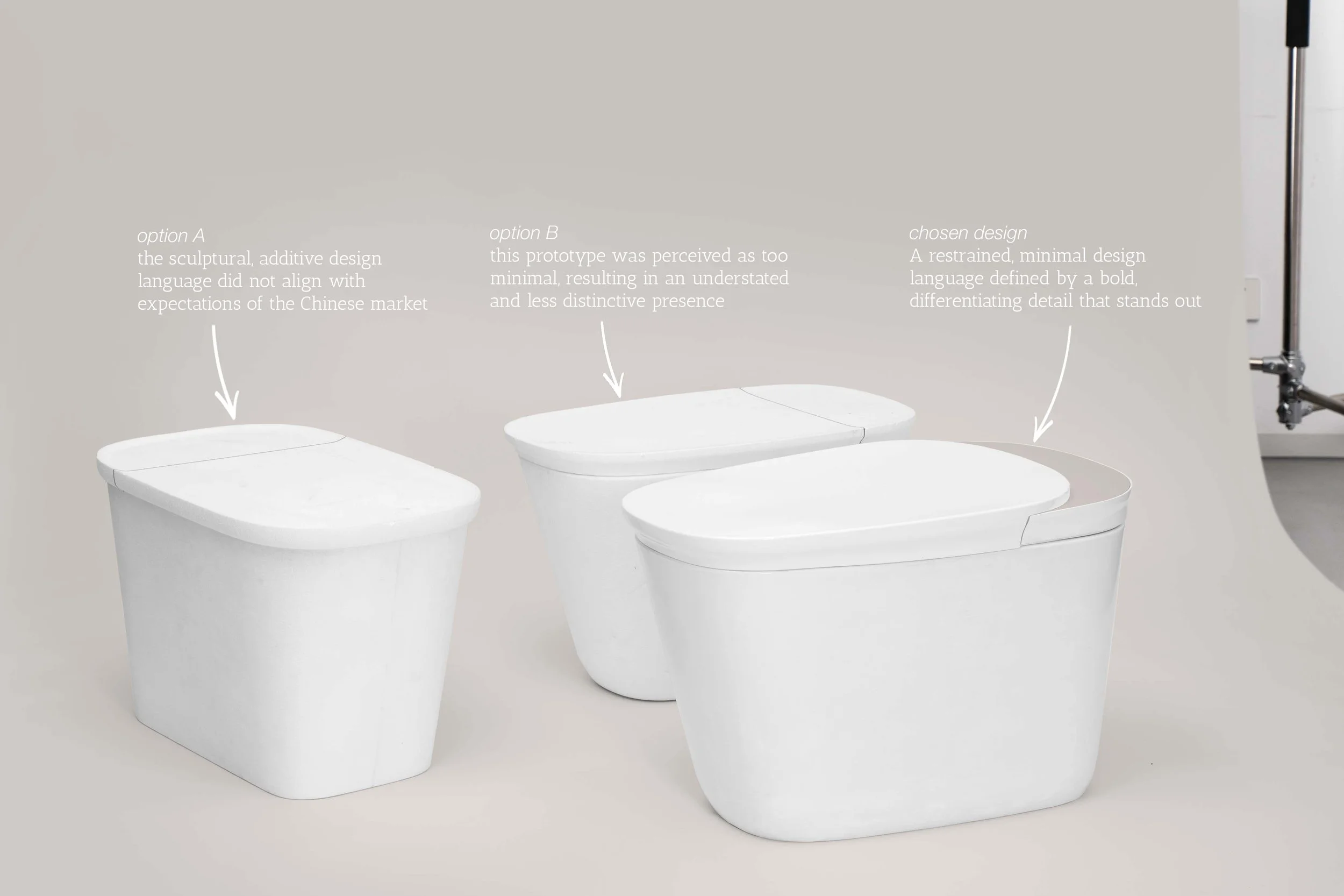 The product family consists out of a sink, furniture, mirror cabinet, and a smart toilet.